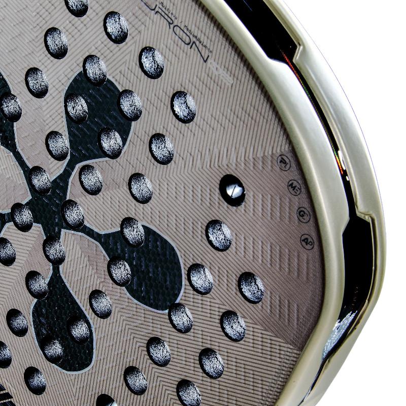 Acabado 3D Grain: textura rugosa que mejora el agarre de la pelota y multiplica los efectos en cada golpe.